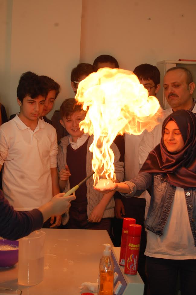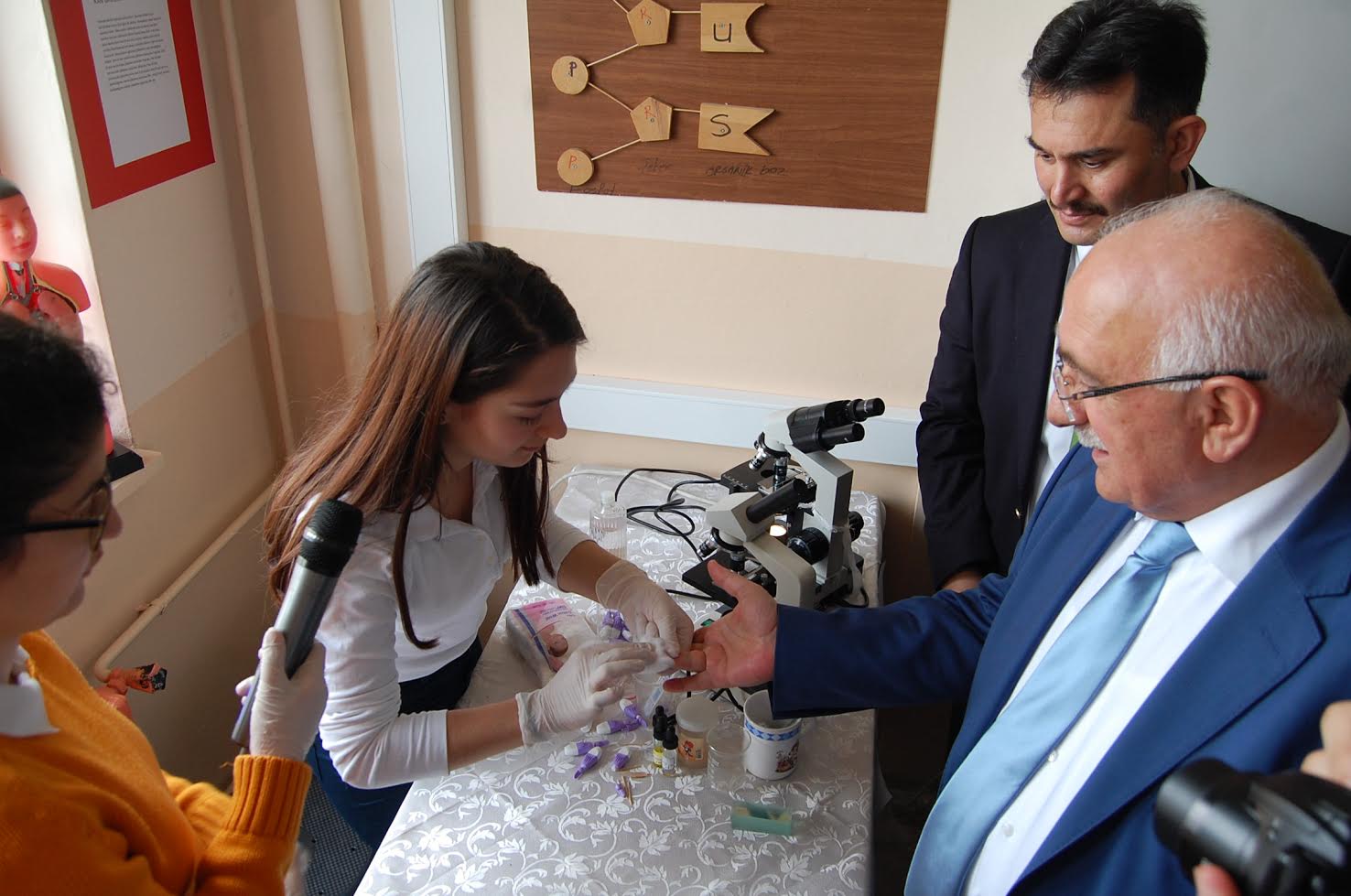 Ardından okulun fizik, kimya ve biyoloji uygulama sınıflarının olduğu Bilim Şenliği’nin kurdelesi kesildi ve Fizik Öğretmeni Salim Kırca ve Kimya Öğretmeni Hanifi Tokak’ın öğrencileri ile hazırladığı sunumlar izlendi. Toplam 62 fizik sunumu ile 11 kimya deneyinin izlenime sunulduğu bölüm büyük beğeni topladı ve renkli görüntülere sahne oldu.