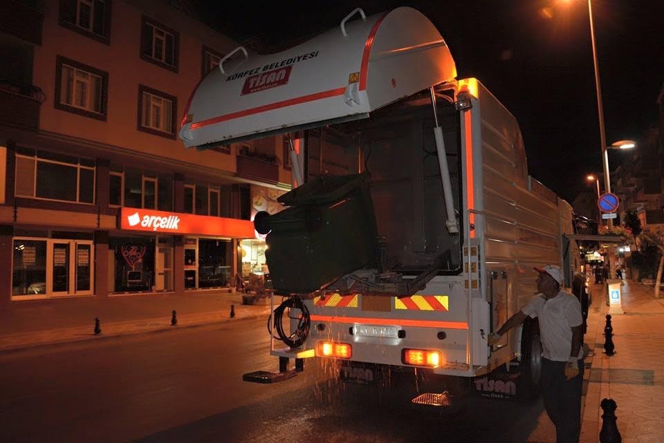 Cadde ve sokaklardan, kaldırımlara, köprülerden köprü korkuluklarına, tünellerden yaya alt geçitlerine, bariyerlerden, çöp koyma alanlarından, kadar Körfez’in dört bir tarafını 24 saat boyunca süpüren, yıkayan ve köşe bucak temizleyen çok sayıda ekipten oluşan Körfez Belediyesi’nin temizlik filosu, temizlik faaliyetlerini trafiği aksatmamak için geceleri yapıyor.