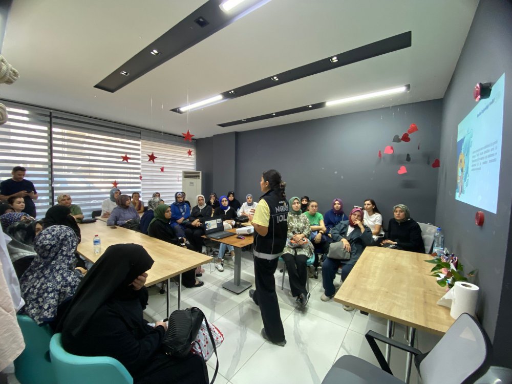 Büyükşehir Belediyesi’nin Anne Şehir Merkezlerine üye olan kadınlar, narkotik polislerinin anlattıklarını can kulağıyla dinledi.
