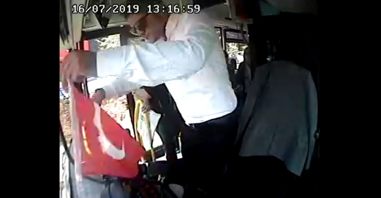 Şoför Mehmet Çöplü, Ulaşımpark’a ait hat 200 numaralı aracıyla 16 Temmuz Salı günü saat 13.00’de Kartal’dan İzmit istikametine doğru hareket etti. Yola çıktığı esnada her şey rutin devam etmekteydi. Güzelyalı mevkiine geldiği sırada aynasına baktı, yandan geçen aracın kırmızı bir bezi ezdiğini fark etti. Ancak ne olduğunu anlayamadı. 60-70 metre daha ilerledikten sonra tekrar aynasına bakan Çöplü, yerde duran ve biraz önce üstünden geçilen bezin Türk Bayrağı olduğunu anladı. Hemen aracını akan trafikte güvenli yere çeken Çöplü, Türk Bayrağı’nı yerden almak için harekete geçti. Bayrağın yanına gelerek yerden alan Mehmet Çöplü, şoför bölümünün ön paneline astı.