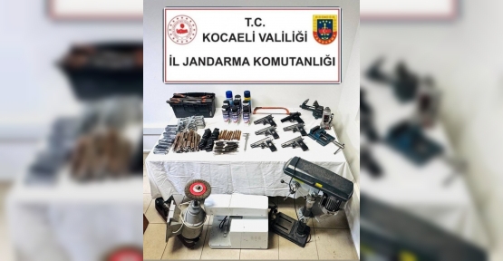 Kocaeli'nin Kartepe ilçesinde jandarma ekiplerince bir eve düzenlenen operasyonda, ruhsatsız tabancalar ile silah yapımında kullanılan çok sayıda parça ve malzeme ele geçirildi.