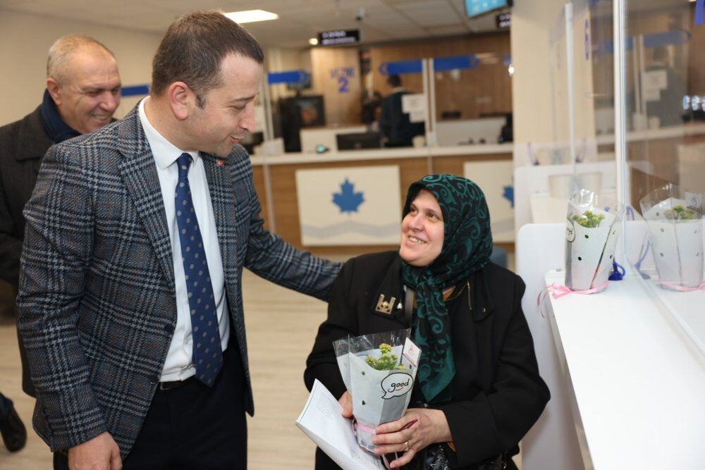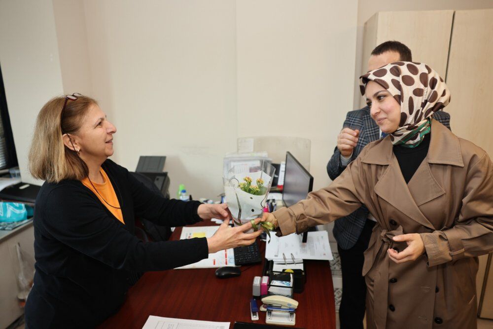 Başkan Adayı Muharrem Tutuş ve eşi Hanife Tutuş, hizmet binası içerisindeki kadın personellerin 8 Mart Kadınlar gününü kutlayarak çiçek verdi. Kadın personellerde nezaketinden dolayı Muharrem Tutuş ve eşi Hanife Tutuş’a teşekkür etti.