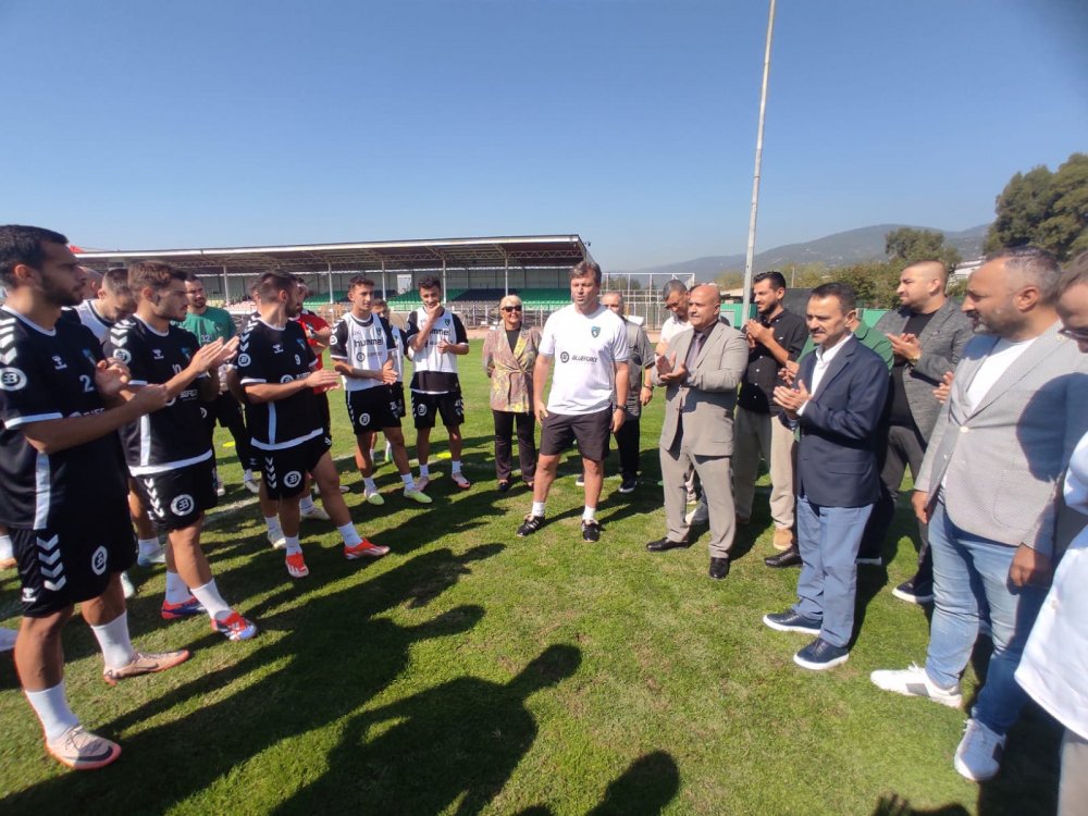 Kocaelispor Kulübü Başkanı Recep Durul, Teknik Direktör Ertuğrul Sağlam ve teknik heyet tarafından karşılanan Vali İlhami Aktaş, sahada antrenman yapan futbolcularımızın yanlarına giderek bir süre sohbet etti ve başarılı olacaklarına yürekten inandığını belirterek, tatlı ikram etti.
