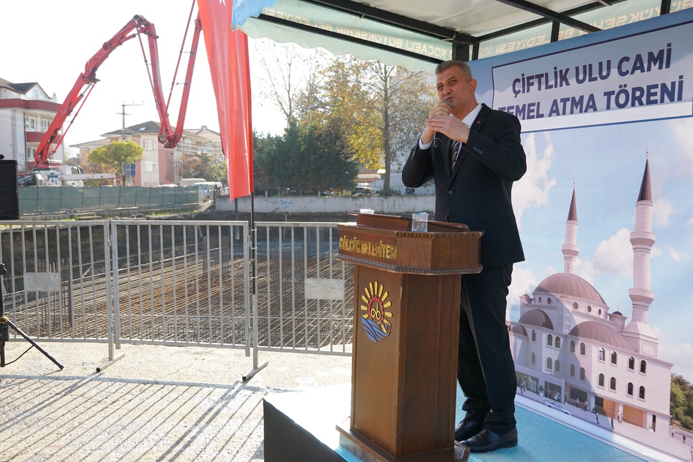 Temel atma töreninde konuşan Gölcük Belediye Başkanı Ali Yıldırım Sezer, “Bu eser, Çiftlik mahallemizin değişmesi güzelleşmesi açısından çok önemli bir eser olacak. Burada muazzam bir altyapı çalışması en az 60 sene gidecek olan bir altyapı çalışması Büyükşehir Belediyemiz tarafından gerçekleştirildi. İnşallah elektrik direkleri aşağı alınıyor dekoratif aydınlatması ile burası yeni bir Amiral Sağlam Caddesi olacak. Hem camimiz hem de bu yapılan çalışmalar ilçemize ve özellikle mahallemize hayırlı uğurlu olsun. İlçemize vermiş olduğu değerden dolayı Büyükşehir Belediye Başkanımız Sayın Doç. Dr. Tahir Büyükakın'a şükranlarımı sunuyorum. Mevla’m hayırlısıyla kazasız belasız en kısa zamanda tamamlamayı nasip eylesin” dedi.