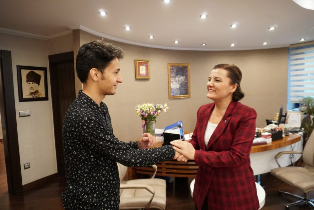 İzmit Belediye Başkanı Fatma Kaplan Hürriyet, lise 10. sınıfta okuyan Kaan Gölgesiz isimli öğrenciyi mutlu etti.