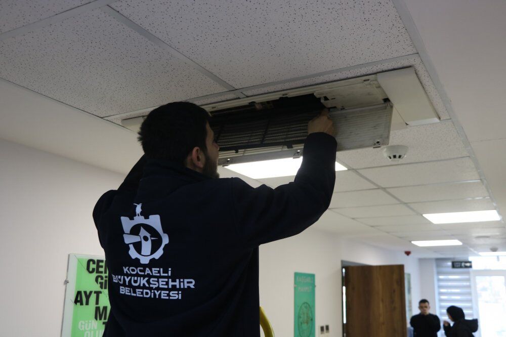 Kocaeli Büyükşehir Belediyesi, tesislerde yer alan iklimlendirme cihazlarının bakım ve onarımlarını düzenli olarak yaparak enerji kaybının önüne geçiyor. Çalışmalar periyodik aralıklarla devam ediyor.
