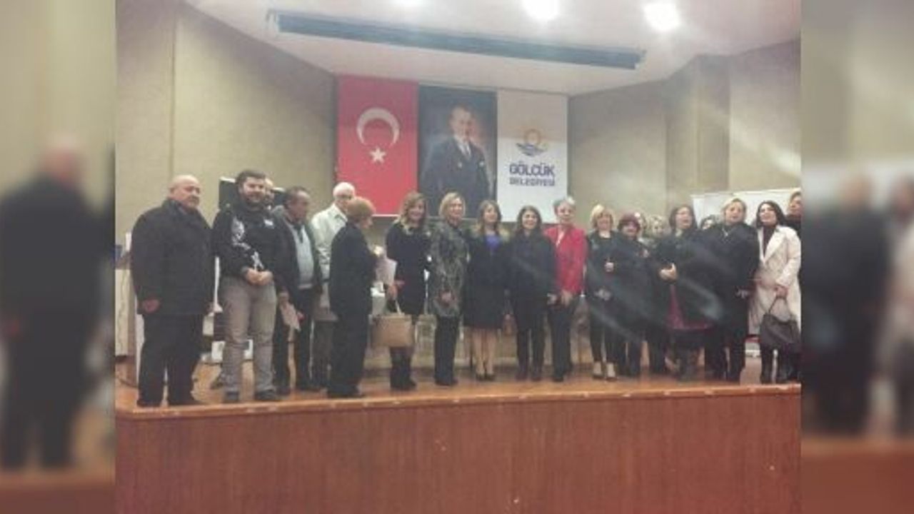 Araştırmacı Yazar Müge Uçar, düzenlemiş olduğu panelde “Kadın haklarına katkıda bulunacağız Kocaeli’ye Kadın Eli Değecek Kadının Sesi Kocaeli 1. Oturum Kadın ve Kariyer Paneli, dün Gölcük Kongre Sarayı’nda, davetlilerin katılımı ile gerçekleştirildi. Panele Gölcük Kaymakamı Mustafa Altıntaş ve eşi Funda Altıntaş, İlçe Jandarma Komutanı Binbaşı Burçak Kırca, Kaymakamlık Yazı İşleri Müdürü Lütfü Yılmaz, Kocaeli Üniversitesi KASAUM Müdürü Prof. Dr. Münevver Tekcan, KOÜ Değirmendere Ali Özbay Meslek Yüksekokulu Seramik, Cam ve Çinicilik Program Koordinatörü Yrd. Doç. Dr. Nermin Demirkol, Körfez Ticaret Odası Başkanı Sibel Moralı, paneli düzenleyen Araştırmacı Yazar Müge Uçar, kaymakamlık daire müdürleri ve ilçemizden birçok kadın katılım gösterdi.