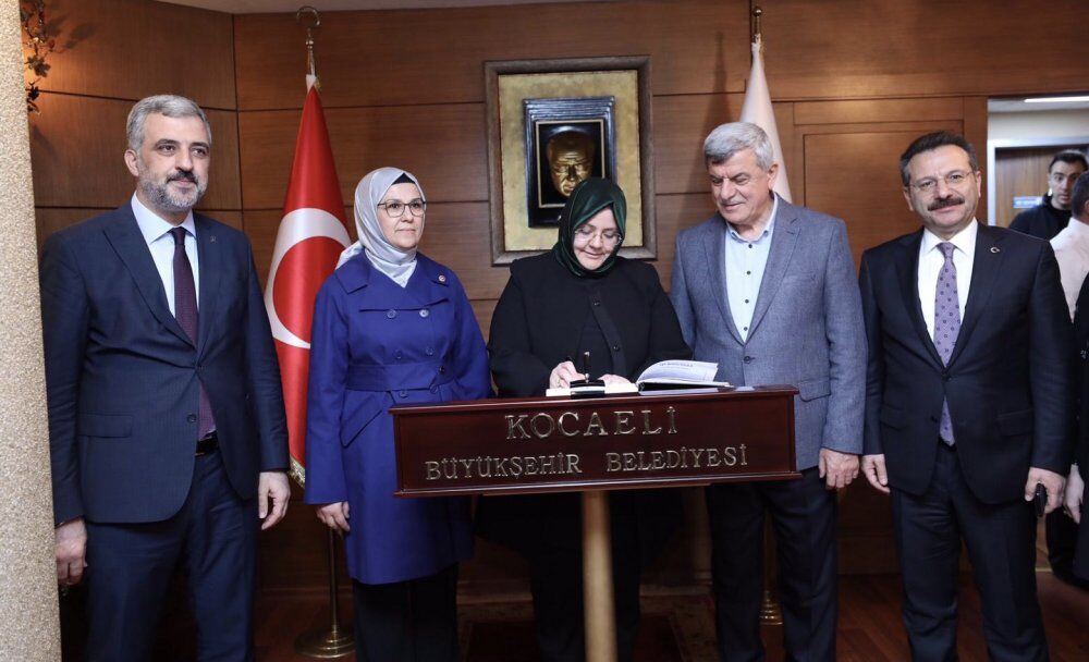 Türk Dünyası Belediyeler Birliği ve Kocaeli Büyükşehir Belediye Başkanı İbrahim Karaosmanoğlu, Aile, Çalışma ve Sosyal Hizmetler Bakanı Zehra Zümrüt Selçuk’u makamında konuk etti. Kocaeli Valisi Hüseyin Aksoy, AK Parti Milletvekili Radiye Sezer Katırcıoğlu, AK Parti İl Başkanı Abdullah Eryarsoy, Kocaeli Büyükşehir Belediyesi Genel Sekreteri İlhan Bayram, Başkan Vekili Zekeriya Özak ve Genel Sekreter Yardımcıları Gökmen Mengüç ve Dr. Ali Yeşildal’ın da eşlik ettiği ziyarette Başkan Karaosmanoğlu, Bakan Selçuk’a kent hakkında detaylı bilgi verdi.