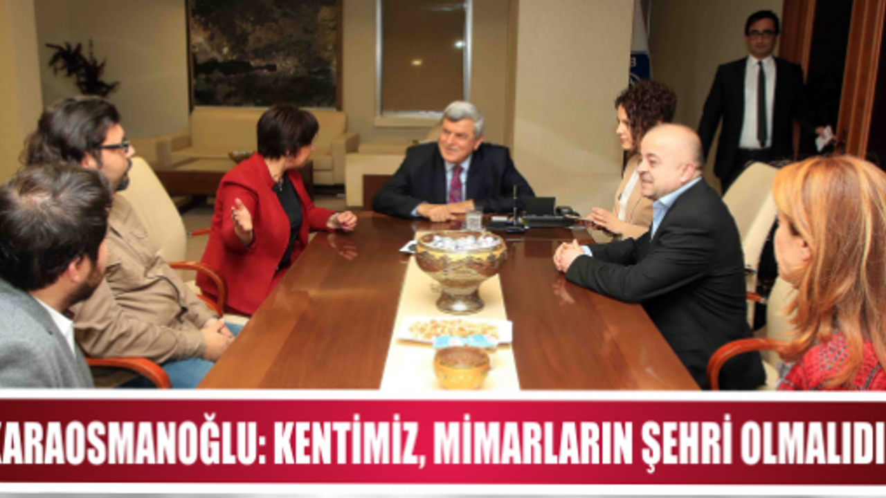 Türk Dünyası Belediyeler Birliği ve Kocaeli Büyükşehir Belediye Başkanı İbrahim Karaosmanoğlu, yakın bir zamanda olağan genel kurulu ile seçilen Mimarlar Odası Kocaeli Şubesi 8. Dönem Başkanı Prof. Dr. Kamuran Öztekin ve yönetim kurulunu makamında konuk etti. Görüşmede kent estetiği ve gelişimi noktasında birlikte yapılabilecek çalışmalar ele alınırken, ziyarette konuşan Başkan Karaosmanoğlu, “Bizim en yakın diyalog kurmamız gereken sivil platformlardan birisi Mimarlar Odasıdır. Kentimiz, mimarların şehri olmalıdır. Şehre yönelirken estetiği, mimariyi ve yeni buluşları dikkate almalıyız. Bunun toplum içinde çok faydalı olacağına inanıyorum. Kentimizin kendine has tarihi bir dokusu vardır. Buna mimarlarımızla birlikte sahip çıkacağız. Hepimizin parolası bu gerçekliğe dayanmalıdır” dedi.