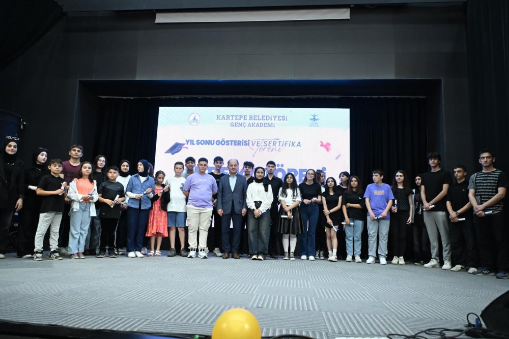 Kartepe Belediye Başkanı Av.M.Mustafa Kocaman’ın vizyon projeleri arasında yer alan Kartepe Genç Akademi yıl sonu gösterisi ve sertifika töreni geniş katılımla gerçekleştirildi. Kocaeli Güzel Sanatlar Lisesi’nde düzenlenen törene Kartepe Belediye Başkanı Av.M.Mustafa Kocaman’ın ev sahipliğinde Kartepe Kaymakamı Hasan Öztürk, İlçe Milli Eğitim Müdürü Ferhat Dilek, Halk Eğitim Müdürü Halil İbrahim Alkan, belediye başkan yardımcıları, belediye meclis üyeleri, siyasi parti temsilcileri, veliler ve öğrenciler katıldı.