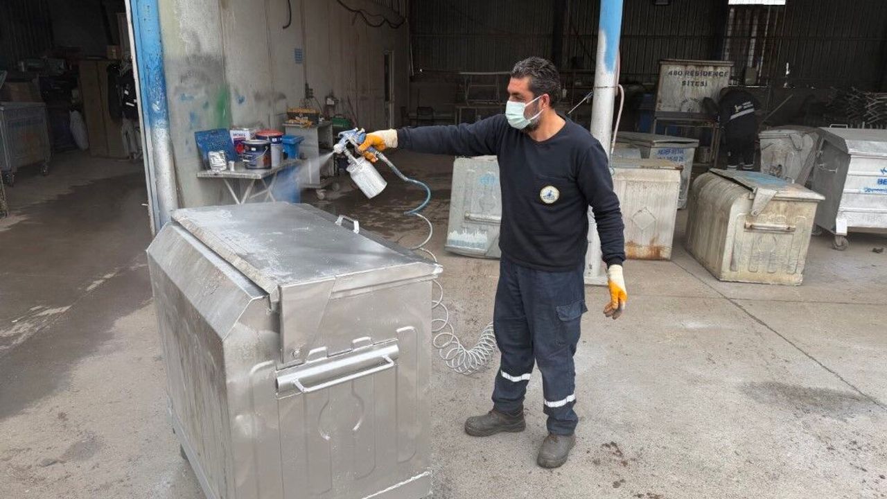 Çalışmalar kapsamında, atölyeye getirilen eski konteynerlerin onarımları yapılıyor. Kullanım nedeniyle deforme olan veya kırılan ayaklar, ekiplerin titiz çalışmasıyla yeniden imal edilerek monte ediliyor. Sağlamlaştırılan konteynerler, dayanıklı boyalarla boyanarak ilk günkü temiz görüntüsüne kavuşturuluyor.