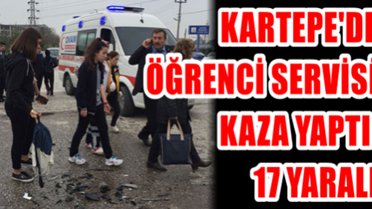 Kartepe'de servis aracı ile panelvan tipi aracın çarpışması sonucu meydana gelen kazada 17 kişinin yaralandığı öğrenildi. Alınan bilgilere göre, KOTO AODB Mesleki ve Teknik Anadolu Lisesi öğrencilerini taşıyan Rüstem Ö. idaresindeki 41 P 3884 plakalı servis minibüsü Mustafa Z. idaresideki 41 KU 595 plakalı panelvan tipi araç ile kavşakta kafa kafaya çarpıştı. Çarpışmanın etkisiyle her iki araç da yolun kenarına savruldu. Kazayı gören çevredeki vatandaşlar olayı sağlık ve polis ekiplerine haber verdi. Kazada servis minibüsü içerisinde savrularak yaralanan 13 öğrenci, 2 öğretmen ve servis şoförü ve şoförün yan koltuğunda oturan Elif U. olay yerindeki ilk müdahalelerinin ardından hastaneye kaldırıldı.