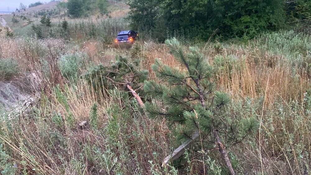 Sürücünün yeşil alanda küçük ağaçları biçerek yaklaşık 50 metre ilerlediği kazada 4 kişi yaralandı.