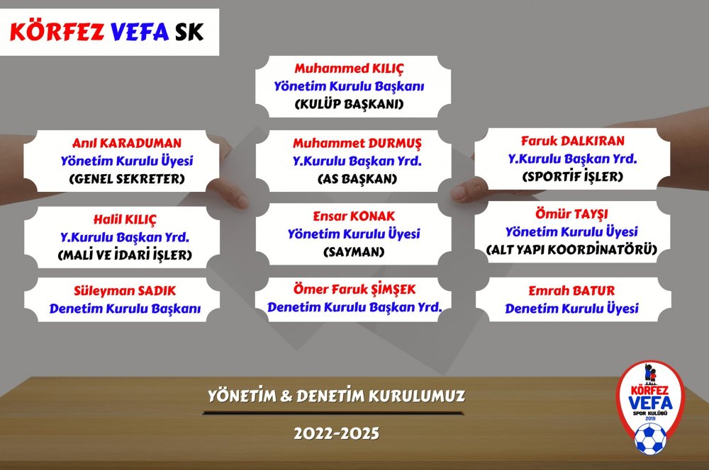 Büyük ilgi gösterilen genel kurulda yapılan oylama neticesinde kulüp başkanlığına bir kez daha seçilen Muhammed Emin Kılıç, “2019’dan bugüne Körfez Vefa Spor Kulübü’nde kurucu olarak yürüttüğüm kulüp başkanlığı görevimizi bizlere yeniden layık gören tüm genel kurul üyelerimize teşekkür ediyorum. 2022-2025 döneminde yeni yönetim kurulu ve denetim kurulu üyeliğine seçilen tüm yol arkadaşlarımı da tebrik ediyor, başarılar diliyorum. Yolumuz açık olsun” dedi.