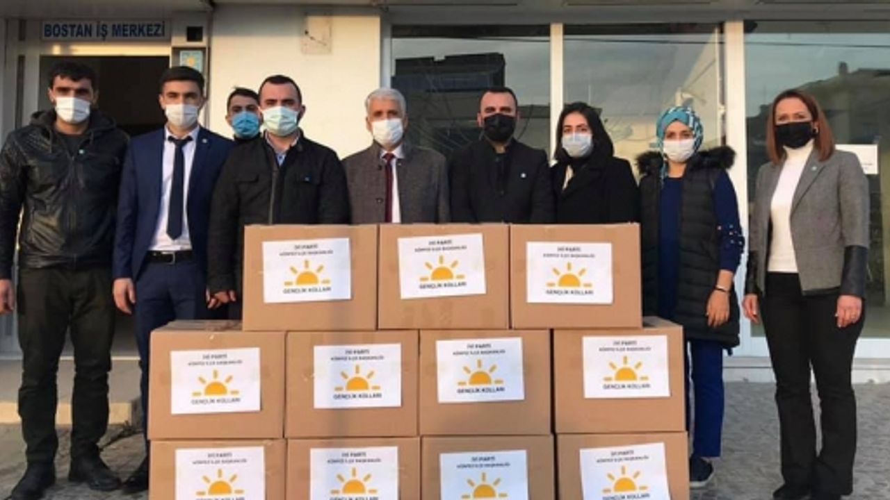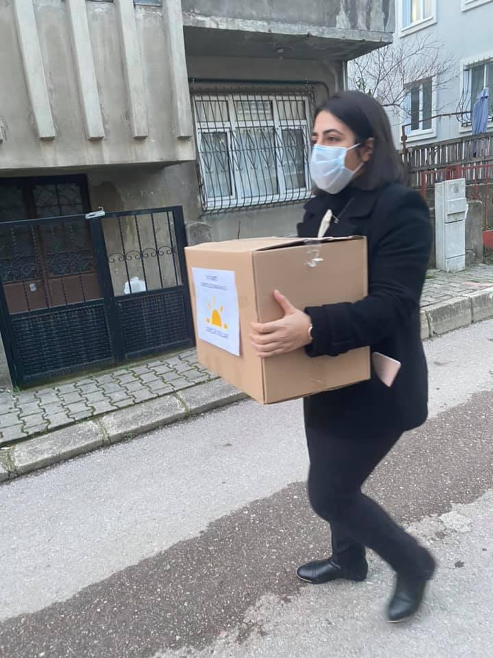 Hazırlanan yardım kolileri ilçe binası önünde toplandıktan sonra yöneticiler tarafından belirlenen ailelere ulaştırıldı.