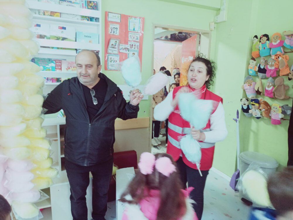 Kızılay Körfez Şube Başkanı Metin Bostan, Başkan Yardımcısı Gazeteci-Yazar Mustafa Eranıl ve Kızılay Genel Sekreteri Meryem Koç Aktaş’ın katılımıyla gerçekleşen etkinlikte, ana sınıfı öğrencilerine sınıflarında, diğer öğrencilere ise okul bahçesinde pamuk şekeri dağıtıldı.