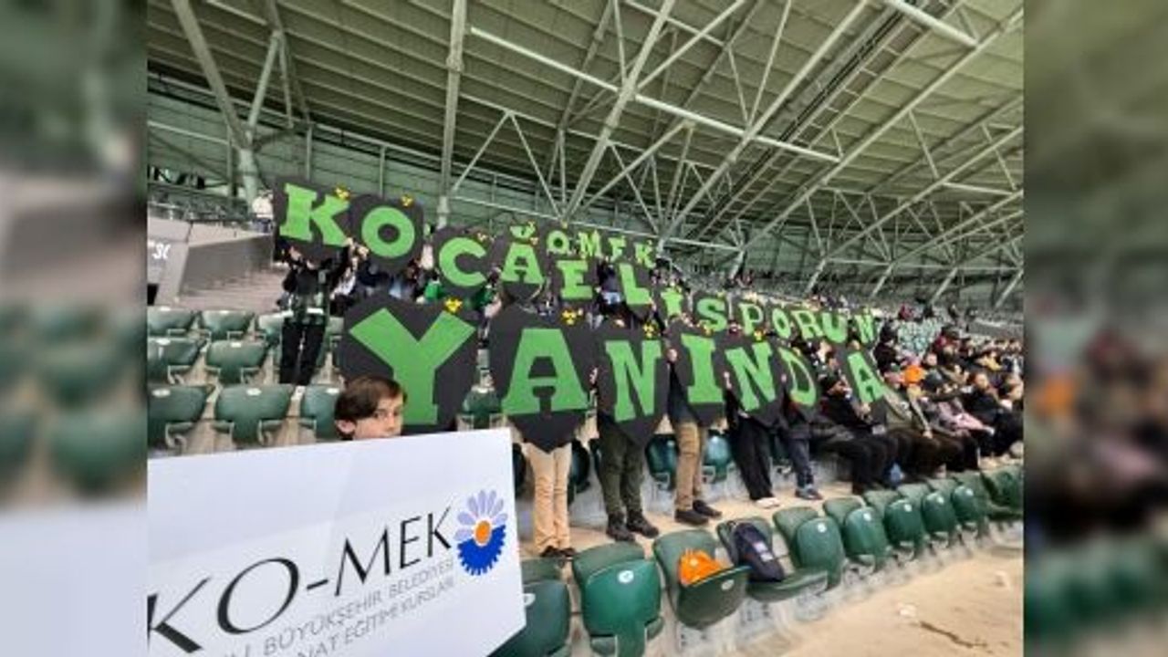 Kentin gurur kaynağı olan Kocaelispor’a destek olmak için günler öncesinden hazırlanan KO-MEK eğitmenleri maç boyunca takıma desteğini sürdürdü. KO-MEK’te görev yapan keçe branşı eğitmenlerinin kendi elleriyle hazırladığı “KO-MEK Kocaelispor’un Yanında” pankartlarıyla tribünlerde yerini alan KO-MEK eğitmenleri aileleri ile birlikte takıma destek verdi.