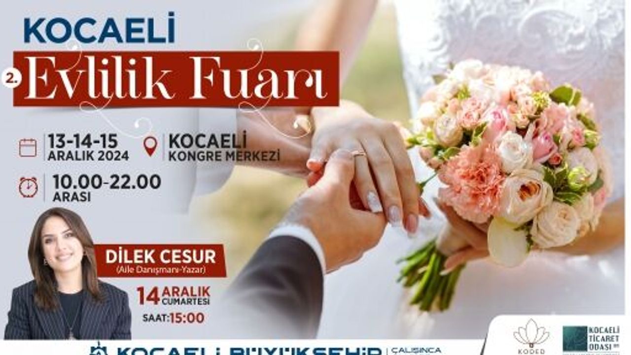 Kocaeli Büyükşehir Belediyesi, Kocaeli Ticaret Odası ve Kocaeli Düğün ve Davet Etkinlik İşletmecileri Dayanışma ve Geliştirme Derneği (KODED) iş birliğinde gerçekleşecek olan 2.Kocaeli Evlilik Fuarı başlıyor. Evlilik hazırlığı yapan çiftlerin heyecanla beklediği fuar, 13-14-15 Aralık tarihlerinde Kocaeli Kongre Merkezi’nde düzenlenecek. Fuar, katılımcılara düğün organizasyonları ile ilgili tüm detayları bir arada görme ve fikir edinme fırsatı sunacak.