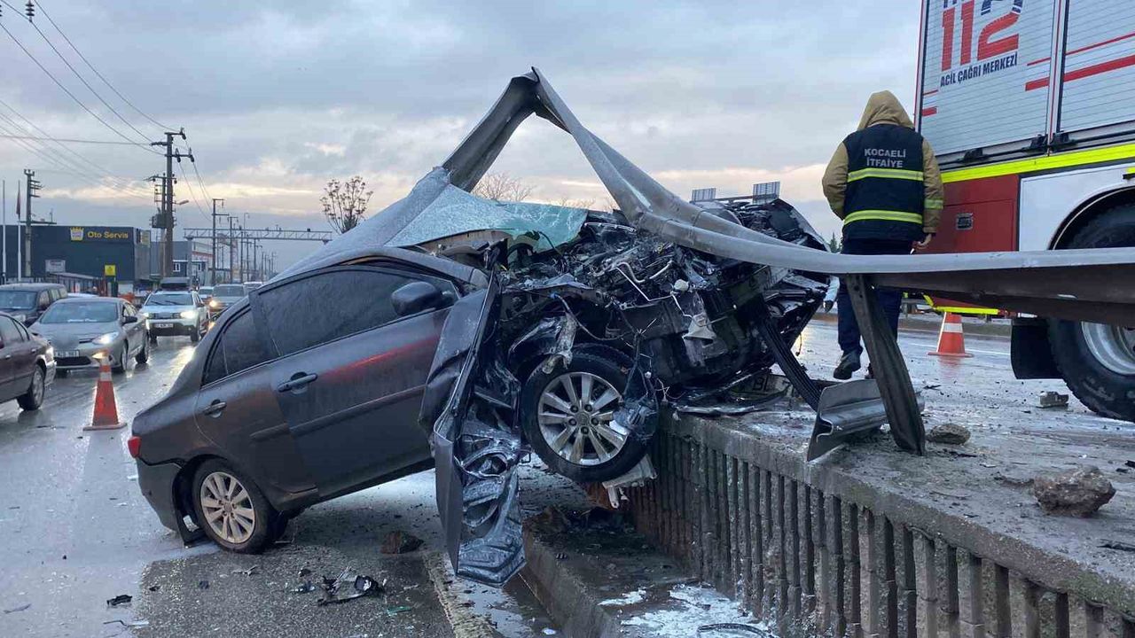 Kaza, İzmit ilçesi Sanayi Mahallesi D-130 kara yolu Gölcük istikametinde meydana geldi. Edinilen bilgiye göre, yağışın etkisiyle kayganlaşan yolda seyir halinde olan F.A. idaresindeki 54 BL 701 plakalı Toyota marka otomobil, sürücüsünün direksiyon hakimiyetini kaybetmesi sonucu kontrolden çıktı. Savrulan otomobil, yol kenarındaki bariyerlere şiddetle çarptı. Çarpmanın etkisiyle yaklaşık 25 metre boyunca bariyerleri kopartan araç, metal yığınlarının üzerinde asılı kalarak durabildi.