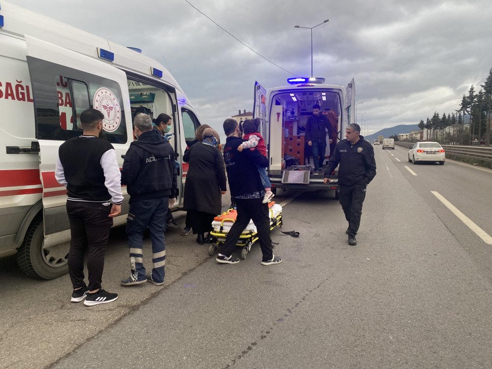 Kazada yaralanan sürücü, eşi ve çocuğu hastaneye kaldırıldı.