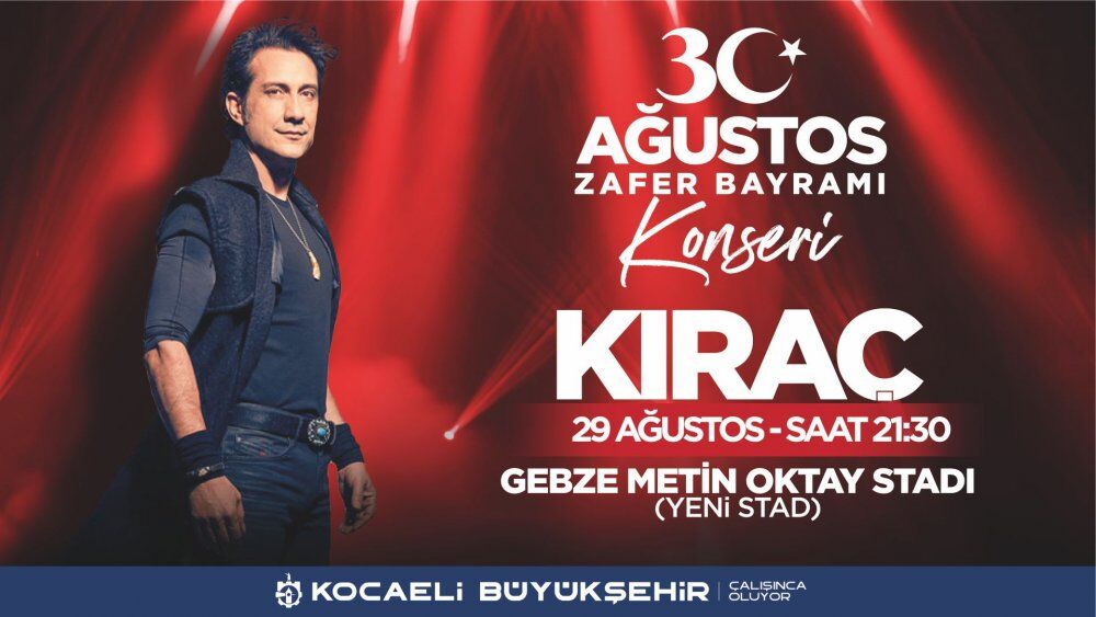 Kocaeli Büyükşehir Belediyesi, Türk Ulusunun bağımsızlık mücadelesindeki en önemli dönüm noktalarından biri olan 30 Ağustos Zafer Bayramı’nı düzenleyeceği etkinlik ve konserlerle kutlayacak. Sevilen sanatçılar; Tuğçe Kandemir, Koray Avcı ve Kıraç, Zafer Bayramı etkinlikleri kapsamında sahne alacak. Konserler, Zafer Bayramı’na coşku katacak.