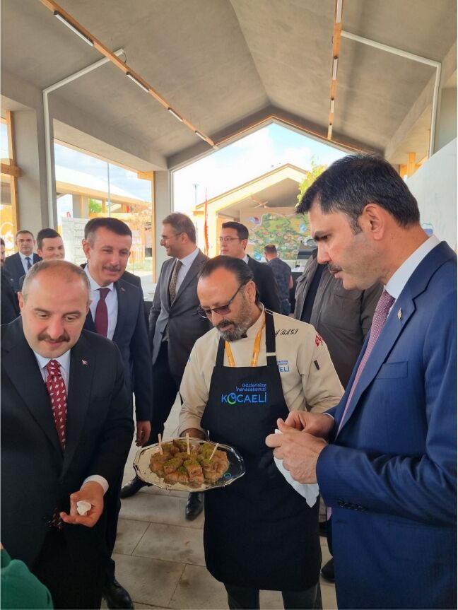 Çevre, Şehircilik ve İklim Değişikliği Bakanı Murat Kurum ile Sanayi ve Teknoloji Bakanı Mustafa Varank, Kocaeli standını ziyaret etti. Bakanlar stantta Sütlü Nuriye, İzmit Simidi ve Keser Köfteyi deneyimledi. Kocaeli yöresel ürünlerinin de tanıtıldığı stantta İzmit Pişmaniyesi, İzmit Simidi, Eşme Ayvası, Karamürsel Gazozu, Sütlü Nuriye, Otur Fatma Tatlısı, Çiğceli Gözleme, Gebze Bayram Çöreği, Dartı ve Samanlı Zeytini gibi birçok yöresel ürün ziyaretçilerin beğenisine sunuldu. Kentimizin şefi Naif Bagi’nin de eşlik ettiği stantta Kocaeli’ye özgü yapılan Keser Köfte, Bakanlar Varank ve Kurum’dan tam not aldı.