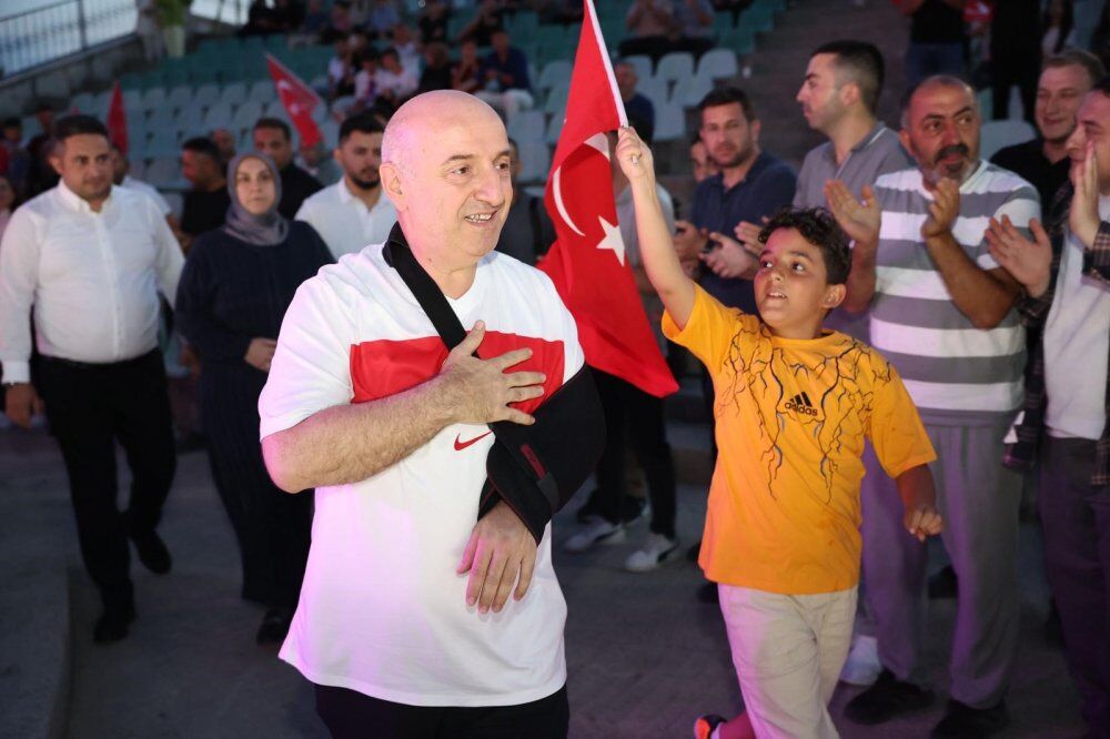 Geçirdiği talihsiz bir kaza sonucu kolundan yaralanarak doktor raporu ile istirahate ayrılan Darıca Belediye Başkanı Muzaffer Bıyık, 15 Temmuz Demokrasi ve Millî Birlik Günü gibi anlamlı bir günde vatandaşları yalnız bırakmadı. Doktor raporlu olmasına rağmen etkinlik alanına gelen Bıyık, "Bu milletin yazdığı destanı anmak boynumuzun borcudur" dedi.