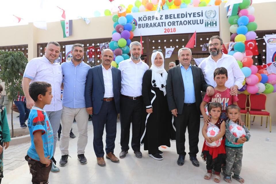 Türk Bayrakları, Körfez Belediyesi ve İHH flamalarıyla donatılan okul, Körfez’den giden protokolün katılımıyla eğitim hayatına başladı.