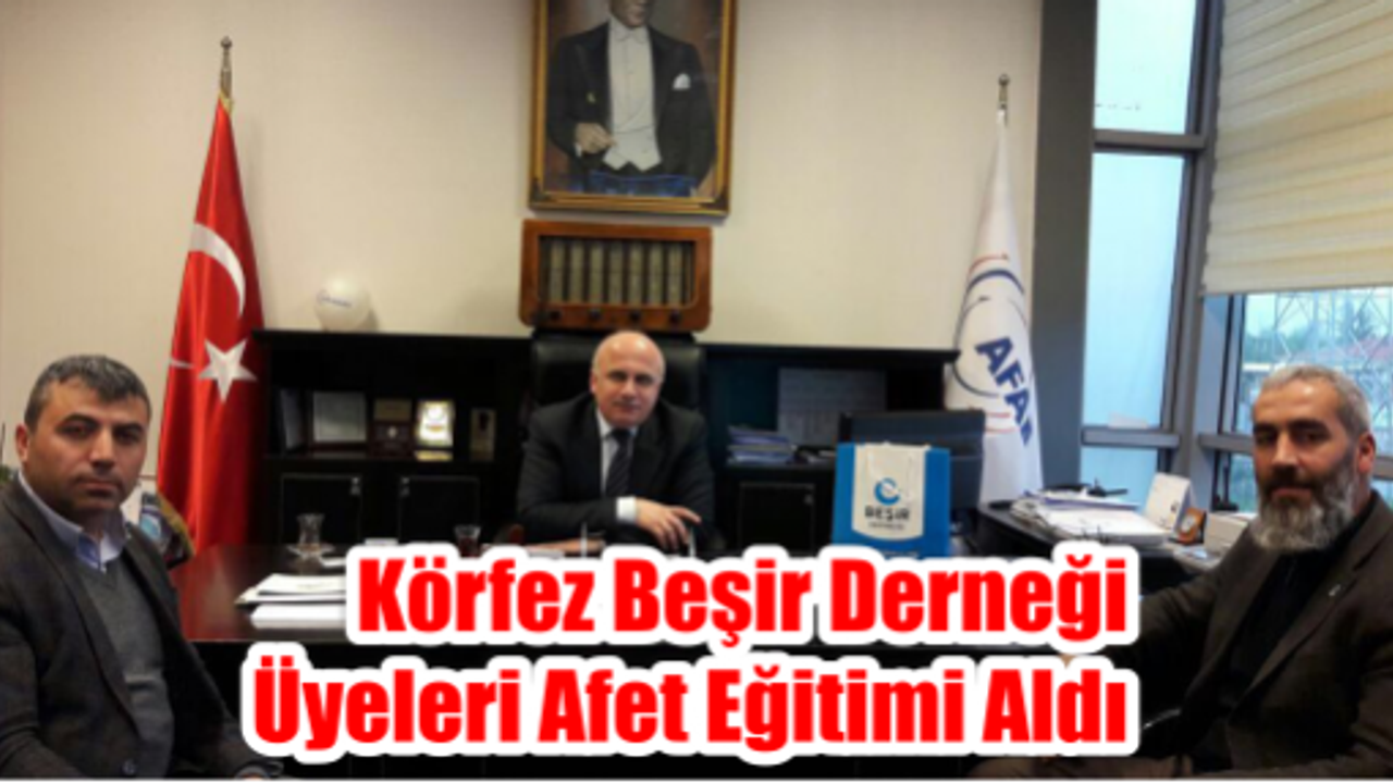 Kocaeli İl Afet Acil Durum Müdürlüğü eğitmenleri tarafından, Körfez Beşir Derneği yönetici ve üyelerinden oluşan 32 kişilik AFAD gönüllüsüne "Temel Afet Bilinci, Arama kurtarma" eğitimi verildi. Kocaeli İl Afet Müdürlüğünde, İl Müdürü Salim Tekoğul nezaretinde başlayan afet eğitimlerine 32 kişi katıldı. Beşir Derneği üyelerine ilk 4 saat afet türleri ve etkileri, yaşadığımız mekânlardaki risklerin azaltılması, afet sırasında doğru davranış şekilleri konularında bilgilendirme yapıldı. Dernek üyelerine ayrıca, yangın anında ilk müdahalenin nasıl yapılacağı ve yangın söndürme tüplerinin nasıl kullanılması gerektiği de anlatıldı. Yapılan eğitimde enkaza giriş teknikleri, enkazda çalışma prensipleri ve arama kurtarmada kullanılan cihazların nasıl kullanıldığı gösterildi. AFAD ile Beşir Derneğinin eğitim çalışmaları belirli aralıkla süreceği belirtildi.