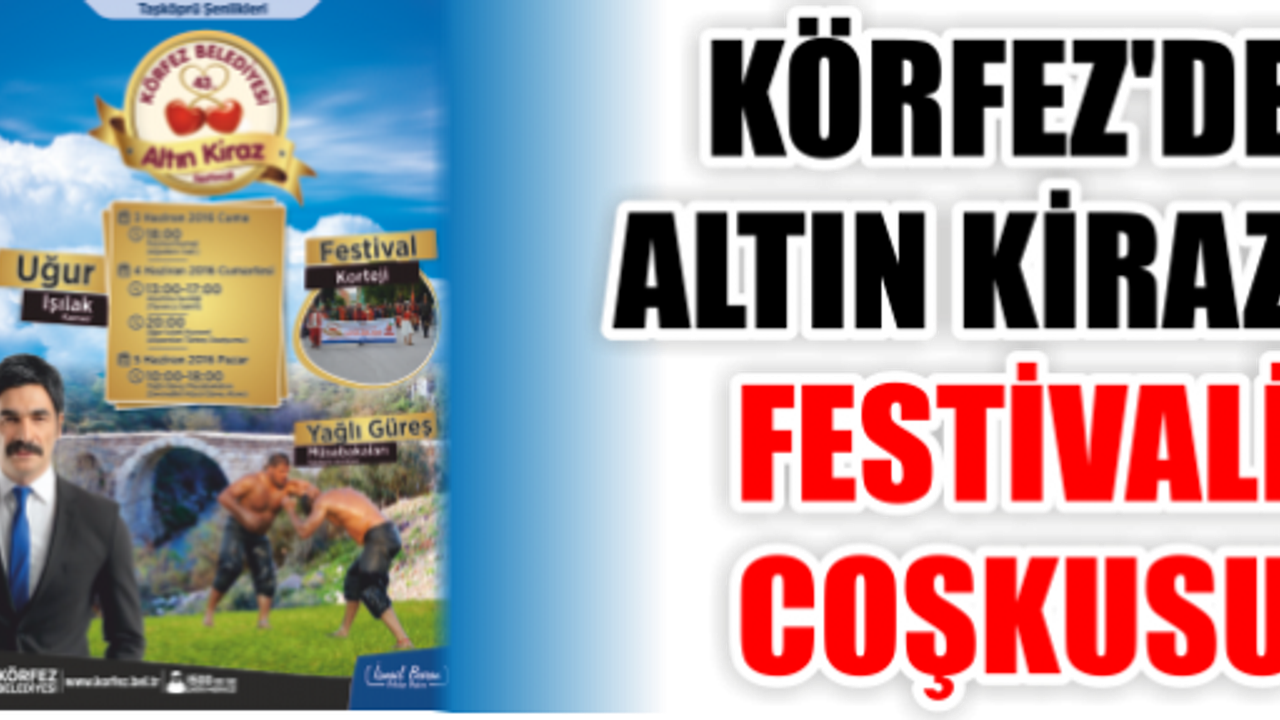 Körfez Belediyesi tarafından düzenlenecek olan Altın Kiraz Festivalinin 43.sü 3 Haziran 2016 Cuma günü saat 18.00’da Ağadere Caddesinde Festival Korteji ile başlayacak. Düzenlenen kortejden sonra, Alparslan Türkeş Stadında Körfez bölgesindeki liselerin mezuniyet töreni gerçekleştirilecek. Festival’in ikinci günü 4 Haziran 2016 Cumartesi saat 13.00-17.00 saatleri arsında yarımca sahilinde uçurtma şenliğiyle çocukların heyecanına ortak oluyor. Uçurtma şenliğinin ardından, Alparslan Türkeş Stadında Altın Kiraz Futbol turnuvası kapsamında Körfez futbol Kulübü ve Şöhretler Karması final maçı gerçekleştirilecek. Ödül töreni ve kupaların verilmesinin ardından saat 20.00’da Uğur Işılak Körfez halkına birlik ve beraberlik konseri verecek. Festivalin son günü olan 5 Haziran 2016 Pazar tarihinde 10.00–18.00 saatleri arasında Sevindikli Köyü Güreş alanında yağlı güreş Müsabakaları’ gerçekleştirilerek Türkiye’nin dört bir yanından gelecek olan pehlivanlar Altın Kemer için kıyasıya mücadele edecek. Festival, ödül töreni ve kapanış konuşmalarıyla sona erecek.