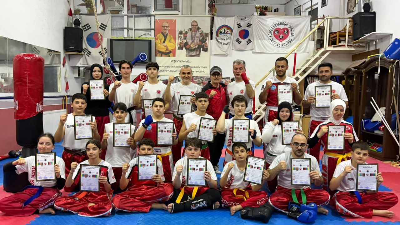 Sınavda başarı gösteren Müjdat Çetin ile oğulları Salim ve Asaf Çetin’in yanı sıra Nurgül Çelik ile oğulları Buğra ve Yağız Taha Çelik, disiplinli çalışmalarıyla takdir topladı. Aşkın Kahveci, “Antrenmanları aksatmadan, azimle çalışan bu ailelerimiz tüm spor camiasına örnek teşkil ediyor. Biz burada sadece spor yapmıyor, büyük bir aile oluyoruz” diyerek sözlerini noktaladı.