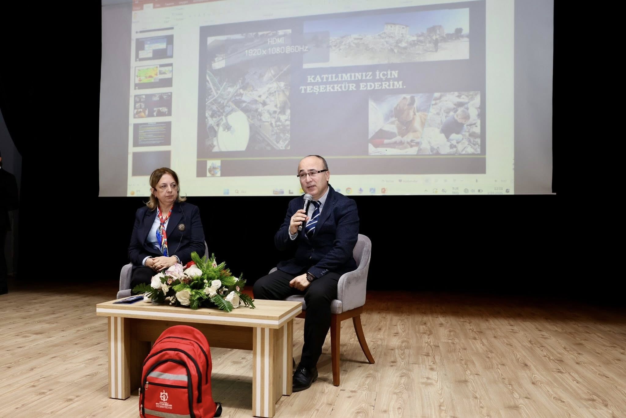 Körfez Kaymakamı Uğur Kalkar da deprem gerçeğini unutmadan hareket edilmesi gerektiğinin altını çizerek, güvenli bir gelecek için çalışmaların kararlılıkla sürdürüldüğünü belirtti. Konuşmaların ardından Kocaeli Üniversitesi Öğretim Üyesi Prof. Dr. Fadime Sertçelik tarafından sunum gerçekleştirildi. Sertçelik’in konuşmasının ardından kendisine plaket takdim edildi.