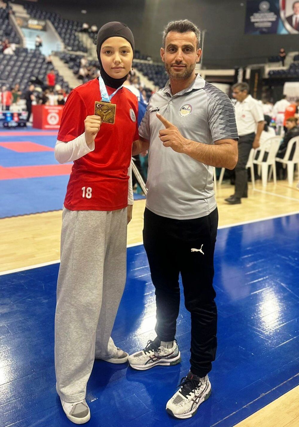 Başakşehir Gençlik ve Spor Kompleksi Spor Salonu’nda düzenlenen Ümit – Genç - U21 ve Büyükler Türkiye Premier Ligi Reis Sönmez etabında Körfez Gençlerbirliği Spor Kulübü’nün genç sporcusu Hümeyra Eraslan şampiyon olarak altın madalya aldı. Türkiye’nin birçok yerinden çok sayıda karatecinin katıldığı organizasyonda ümitler 61 Kg’da tatamiye çıkan Körfezli sporcumuz Hümeyra güçlü ve iddialı rakiplerini yenerek şampiyon olmayı başardı. Hümeyra Eraslan şampiyonluk sevincini antrenörü Şaban Ağaya ile paylaşarak altın madalya almanın mutluluğunu yaşadı.