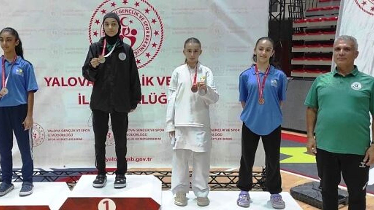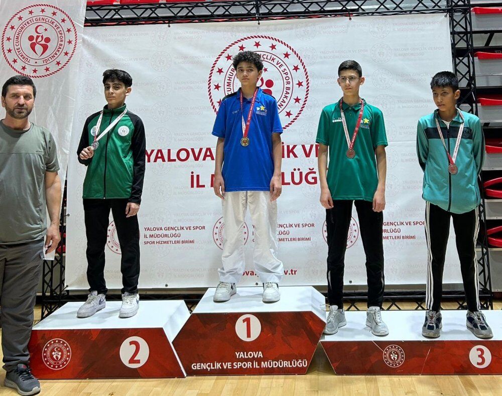 Yalova Gençlik Hizmetleri ve Spor İl Müdürü Metin Kaplan ile Karate Yalova Temsilcisi Mehmet Delioğlu, dereceye giren sporculara madalya ve başarı belgesi verdiler.