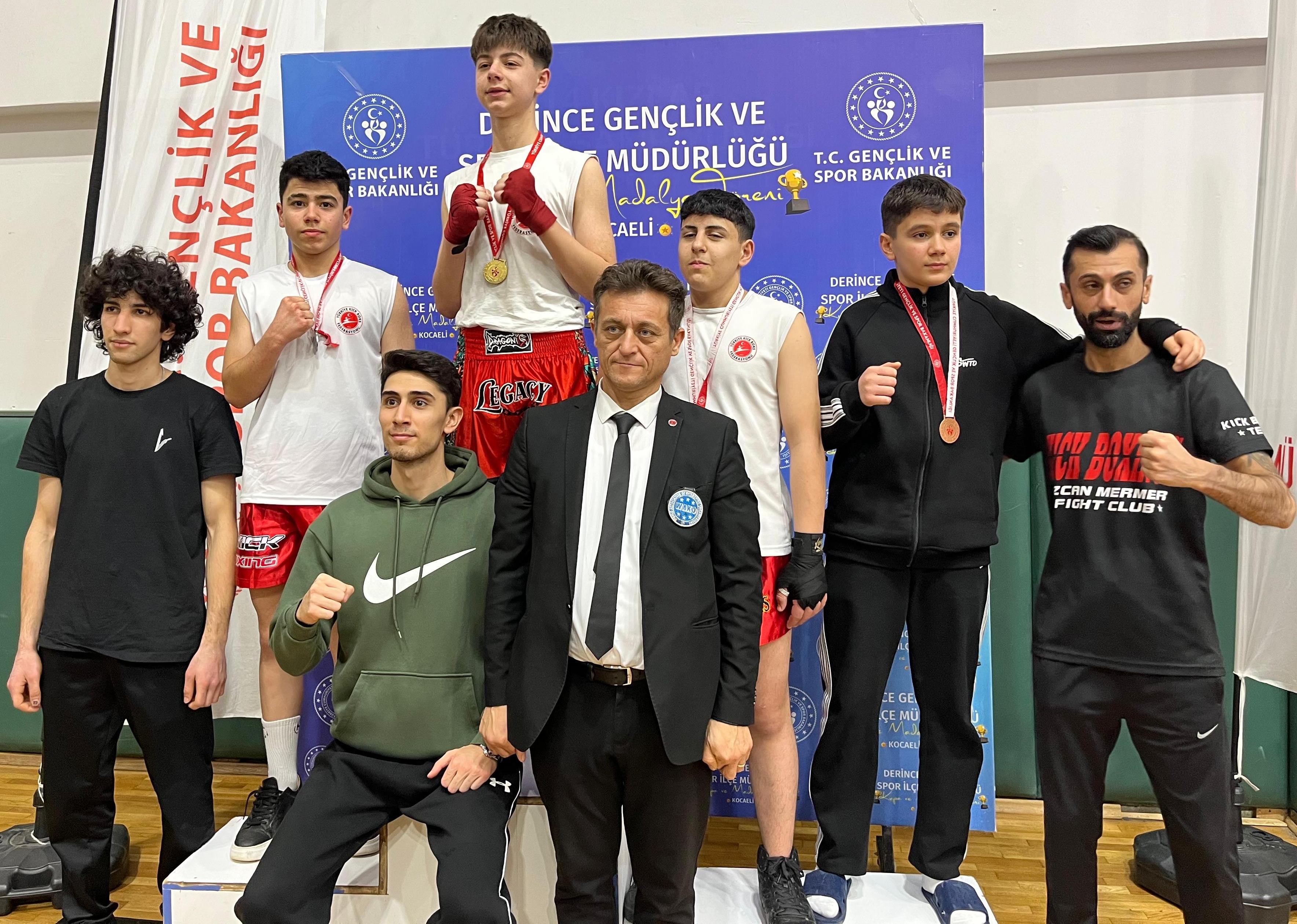 Derince Spor Salonu’nda yapılan Türkiye Kick Boks Şampiyonası Kocaeli İl Seçmeleri’nde Körfez Gençlerbirliği Spor Kulübü sporcuları;