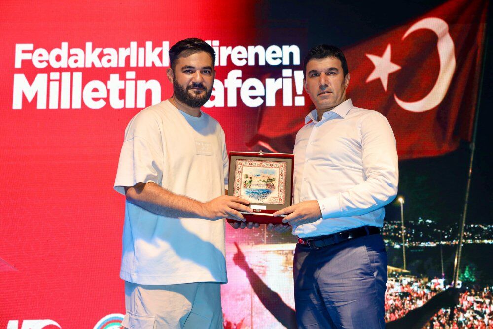 15 Temmuz 2016’da hain darbe girişimine karşı milletimizin gösterdiği direniş tarihin en önemli noktalarından birdir. Kadın erkek, genç yaşlı demeden meydanlara inmiş, tanklara, uçaklara karşı göğsünü siper etmiştir. 15 Temmuz sadece bir direnişin değil, birlik ve beraberliğimizin de simgesi olmuştur. Allah bizlere bir daha böyle acılar yaşatmasın” dedi” ifadelerini kullandı.