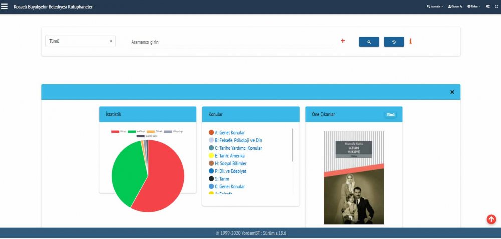 Covid-19 salgını nedeniyle dünyada olduğu gibi Türkiye’de de kültür, sanat etkinlikleri bir bir iptal olurken salgının artmaması için evinden çıkmayan vatandaşlar için Büyükşehir Belediyesi’nden kültürel destek geldi. Kocaeli Büyükşehir Belediyesi’nin kütüphanelerinde yer alan 23 bin eserin e-kitap’a dönüşmüş hali ücretsiz vatandaşlara sunuldu. Bu zor günleri en kısa zamanda atlatabilmek adına evde vakit geçiren bireyler, ‘kütüphane.kocaeli.bel.tr’ web adresine girerek online kayıt olabiliyor. Üye olduktan sonra da tüm e-kitaplara erişim hakkı kazanıyor.