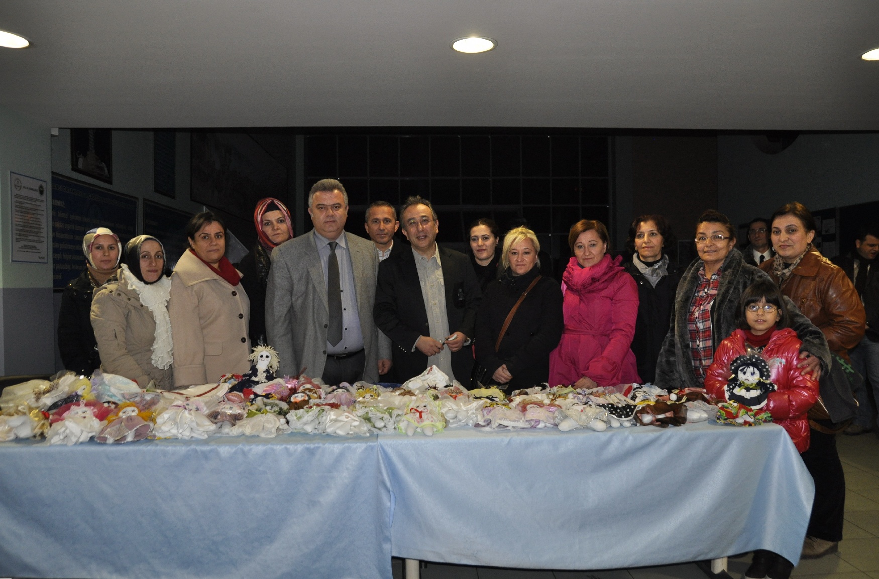 eğitim gören çocuklara destek sağlamak amacıyla kurduğu bez bebek standına giderek,