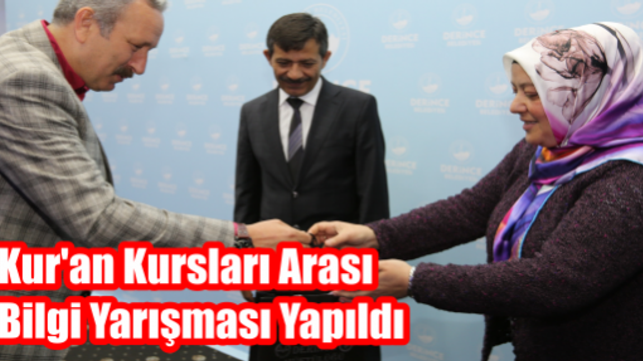 Derince’de hizmet veren Kuran Kursları arasında düzenlenen bilgi yarışmasında ilçe finalleri yapıldı. Zübeyde Hanım Kültür Merkezi’nde düzenlenen ilçe finallerini başta Derince Kaymakamı Mesut Yıldırım,ve Derince Belediye Başkanı Ali Haydar Bulut olmak üzere İlçe Müftüsü Birol Nurlu, Çenedağ Mahalle Muhtarı Osman Koçyiğit, Deniz Mahalle Muhtarı Seçkin Altan, müftülük görevlileri ve ilçedeki Kuran Kursları’nda eğitim gören hanımlar büyük bir dikkatle takip etti.