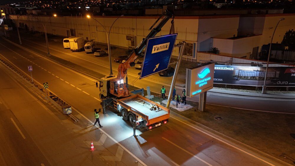 Kent genelinde hayata geçirdiği kavşak, tünel, köprü ve üst geçit projeleriyle ulaşımı kolaylaştıran Kocaeli Büyükşehir Belediyesi, işaret ve yönlendirme levhalarıyla da yayaların sağlıklı ve güvenli bir şekilde seyahatlerine olanak sağlıyor. Bu kapsamda Ulaşım Dairesi Başkanlığı ekipleri, gece saatlerinde Kocaeli’nin farklı noktalarında L tipi yönlendirme levhası çalışması gerçekleştiriyor.