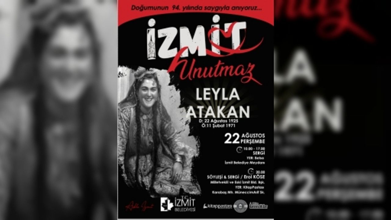 1968 yılında Türkiye'nin doğrudan seçimle gelen ilk kadın Belediye Başkanı Leyla Atakan, doğum gününde İzmit Belediyesi tarafından düzenlenecek etkinliklerle anılacak. 22 Ağustos günü Leyla Atakan anısına açılan sergi Belsa İzmit Belediye Meydanı’nda sabah saat 10.00 ile akşam 17.00 arasında İzmitlilerin ziyaretine açık olacak. Ayrıca İzmit Belediyesi eski Başkanı ve Milletvekili Erol Köse saat 20.00’da Kitap Pastası adlı mekânda İzmitlilerle buluşarak gerçekleştireceği söyleşide Leyla Atakan’ı anlatacak.