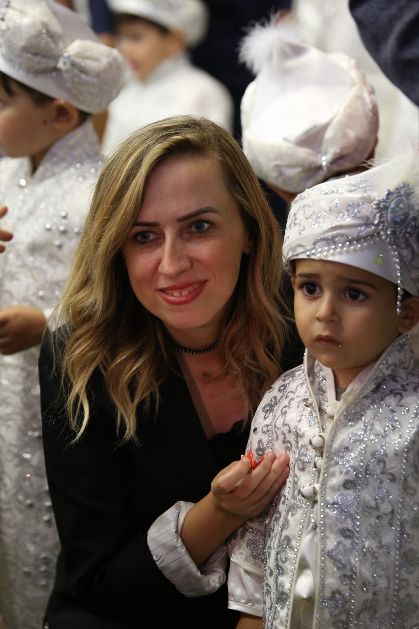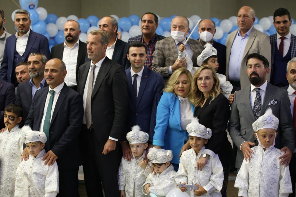 Toplu sünnet programı katılan çocukların Körfez Ağadere Caddesi’nde toplanarak, dev Türk Bayrağı ile ve çocuklardan oluşan Mehteran takımıyla Necmettin Erbakan Kültür Merkezi’ne konvoy eşliğinde gitmeleriyle başladı. Salonda bir araya gelen çocuklar, aileleri, kirveler ve konuklar kalabalık katılım gerçekleştirdiler.
