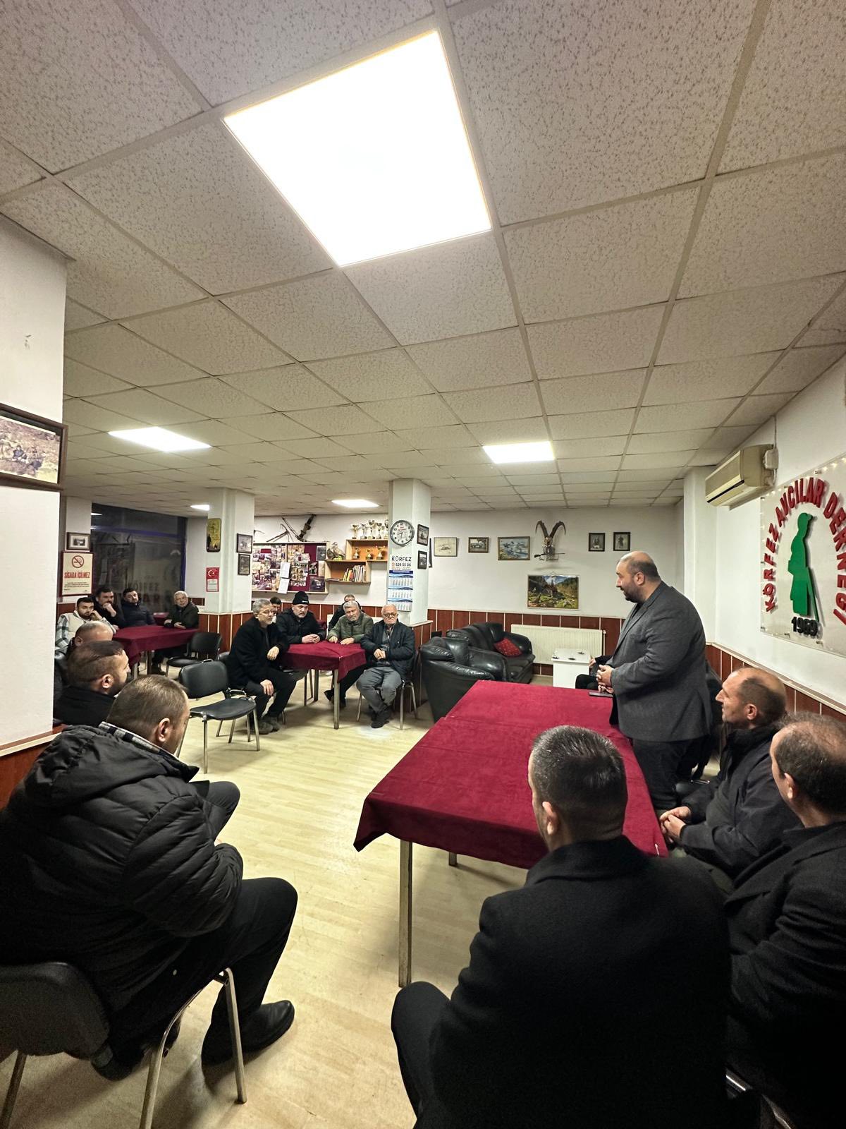 Milliyetçi Hareket Partisi (MHP) Körfez İlçe Başkanı Av. Doğan Bekiroğlu ve beraberindeki heyet, Körfez Avcılar Derneği’ne bir ziyaret düzenlenen dernek yönetimi ve üyelerle bir araya geldi. Oldukça samimi bir atmosferde gerçekleşen görüşmede güncel konular ve yerel sorunlar üzerine kapsamlı bir istişare yapıldı. Bekiroğlu, vatandaşın sorunlarını yerinde dinlemek amacıyla başlatılan “Derdiniz Derdimizdir” programının önemine değinerek, çözüm odaklı siyaset vurgusu yaptı.