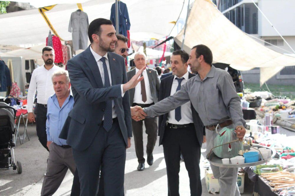 MHP İl Başkanı Yunus Emre Kurt, ilçe başkanı Zeki Gürsu, parti yöneticileri ve meclis üyeleri ile birlikte ilçenin en büyük semt pazarlarından Mimar Sinan Mahallesi’ndeki Cuma Pazarı’nı da dolaştı. Burada vatandaşları selamlayan Kurt, pazarcı esnafına da bol kazanç temennisinde bulundu.