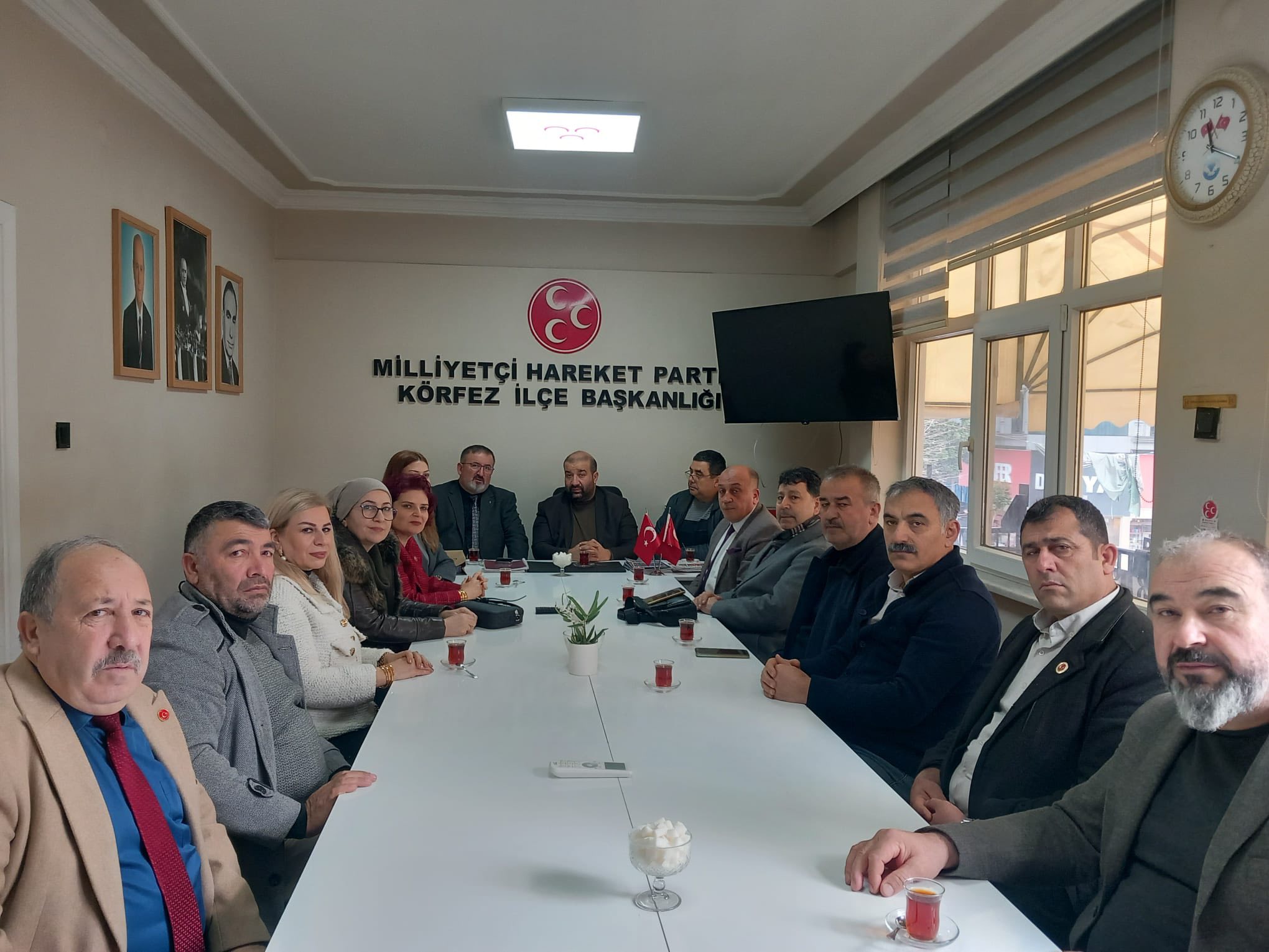 Muhtarlar heyetinin bir sonraki durağı ise MHP Körfez İlçe Başkanlığı oldu. İlçe Başkanı Av. Doğan Bekiroğlu tarafından ağırlanan heyet, mahallelerin güncel durumu ve vatandaşların talepleri üzerine fikir alışverişinde bulundu. Ziyaretin ardından kısa bir açıklama yapan Bekiroğlu, “Körfez Muhtarlar Derneği Başkanımız Engin Öztürk Bey ve kıymetli muhtarlarımız teşkilatımıza nezaket ziyaretinde bulunmuştur. Nazik ziyaretleri için kendilerine teşekkür ederim” diyerek iş birliği mesajı verdi.