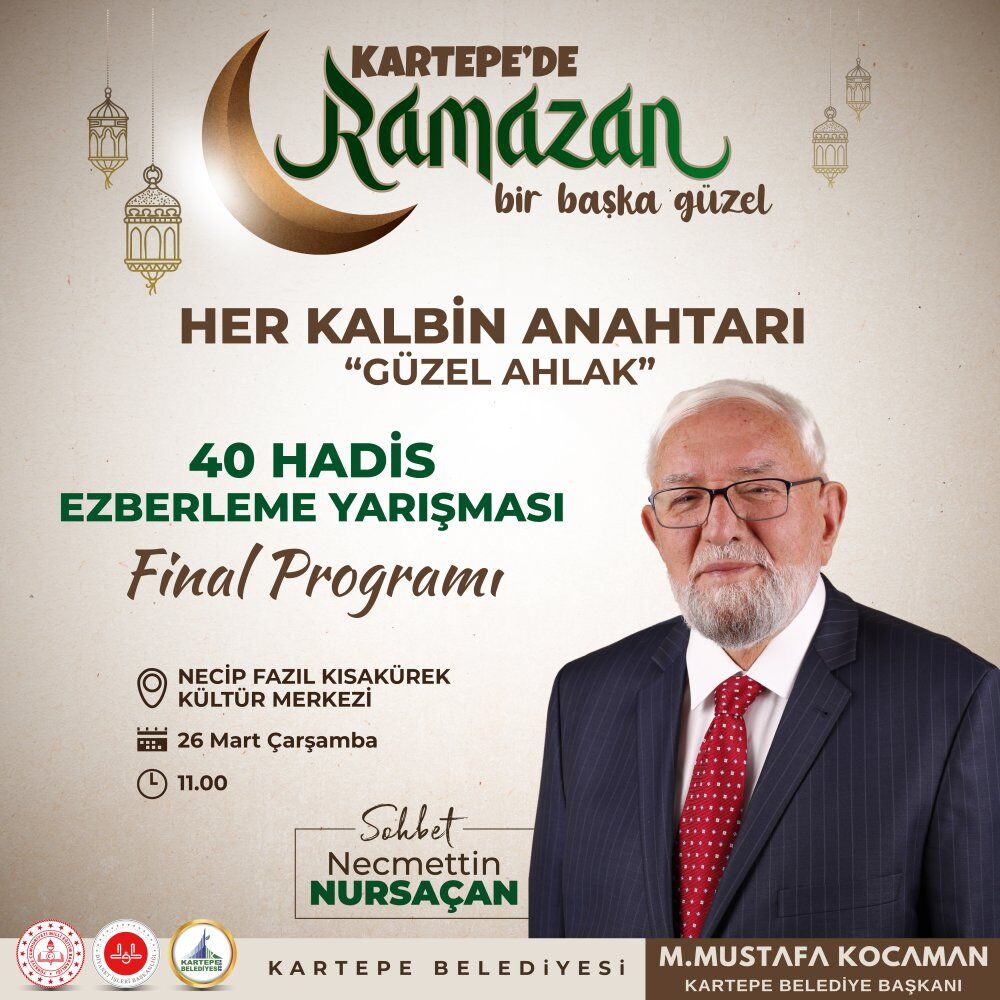 Ramazan-ı Şerif Ayı münasebetiyle Kartepe Belediyesi, İlçe Müftülüğü ve Milli Eğitim Müdürlüğü’nün ortak çalışmasıyla, 7. sınıf öğrencilerine hitap eden Her Kalbin Anahtarı “Güzel Ahlak" 40 hadis ezberleme yarışması düzenlendi.