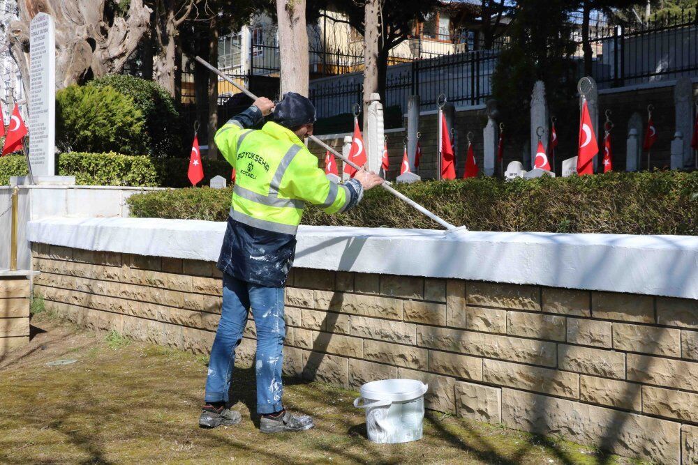 Şehitliklerde gerçekleştirilen bakım çalışmaları kapsamında tüm zeminler boyanarak düzenlendi. Zeminlerin boyanması hem görsel açıdan şehitliklerin daha düzenli ve bakımlı görünmesini sağladı. Ekipler, çevre düzenlemesinin yanı sıra şehitliklerin her noktasını titizlikle temizledi. Yapılan çalışmaların bir parçası olarak, şehitliklerde mevsimine uygun çiçekler dikildi. Bahar ayının gelmesiyle birlikte çevre düzenlemesinin yanı sıra renkli ve canlı çiçekler ile şehitlikler görsel olarak daha da güzelleştirildi. Bu çalışmalarla ziyaretçilerin huzurlu bir atmosferde dua etmesi amaçlandı.