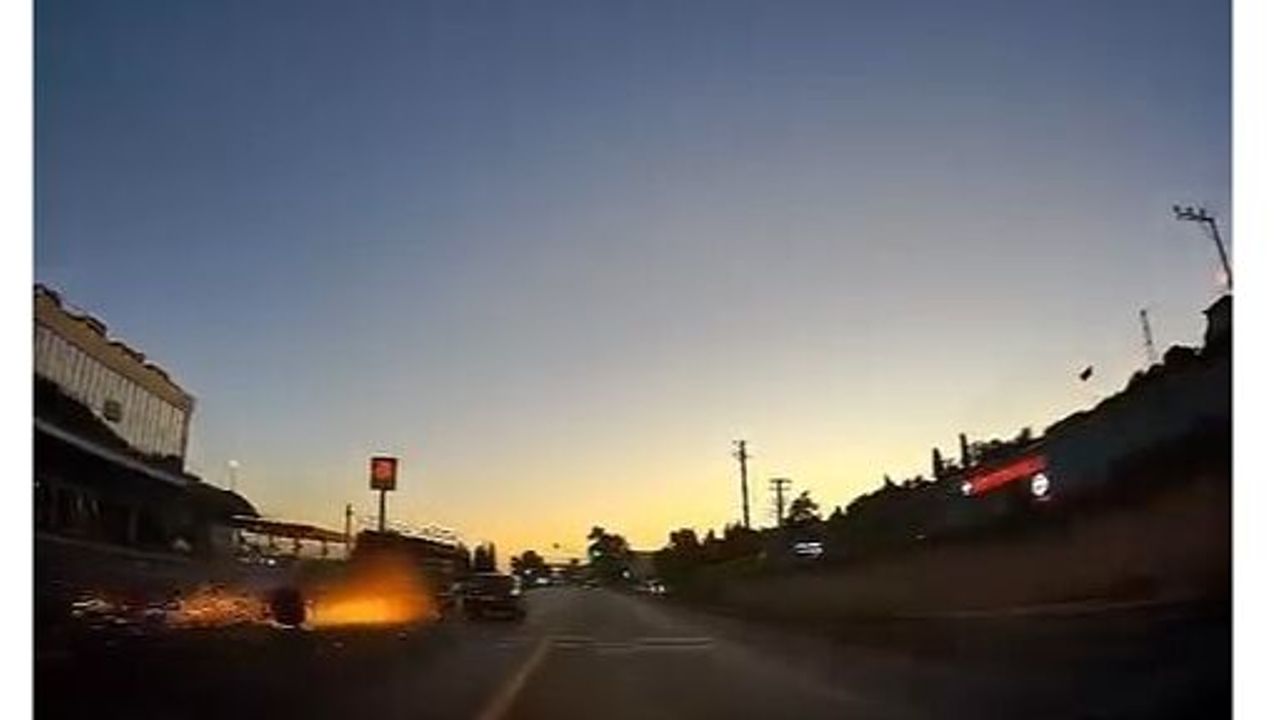 Kocaeli'nin Körfez ilçesinde D100 karayolunda ilerleyen kamyonetin lastiği çıktı. Jant üzerinde kıvılcımlar çıkartarak ilerleyen kamyonet ilginç görüntüler oluşturdu. O anlar başka bir aracın kamerası tarafından saniye saniye kaydedildi.