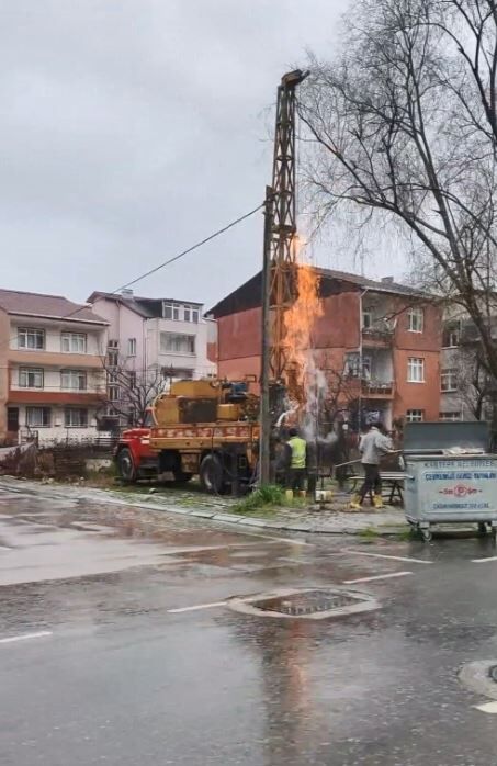 İlginç olay, dün saat 14.00 sıralarında Dumlupınar Mahallesi Bedir Sokak'ta metro inşaatının sondaj çalışması sırasında meydana geldi. Yaklaşık 47 metre derinlikte sondaj çalışması yapıldığı sırada yüzeye çıkan metan gazı alevlendi. İşçilerin 112 Acil Çağrı Merkezi'ne ihbarda bulunması üzerine bölgeye polis, sağlık, itfaiye ve AFAD ekipleri sevk edildi. Şerit çeken ve demir bariyerle yangının çevresine girişleri kapatan ekipler, bölgede güvenlik önlemi aldı.