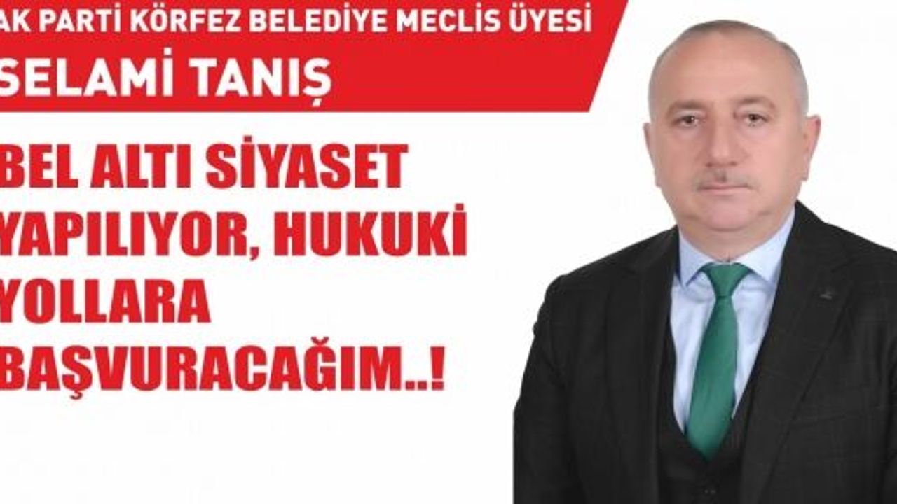 Chp’li Körfez Belediye Meclis Üyesi Erkan Uygun ‘un bir kaşık suda fırtına kopartıp basına çıkmak için bel altı siyaset yaptığını söyledi. Tanış ; Yalan yanlış bilgilerle kamuoyunda beni, ailemi, partimi ve kurumu rencide edici açıklamalarından dolayı hukuki yollara başvuracağını söyledi.